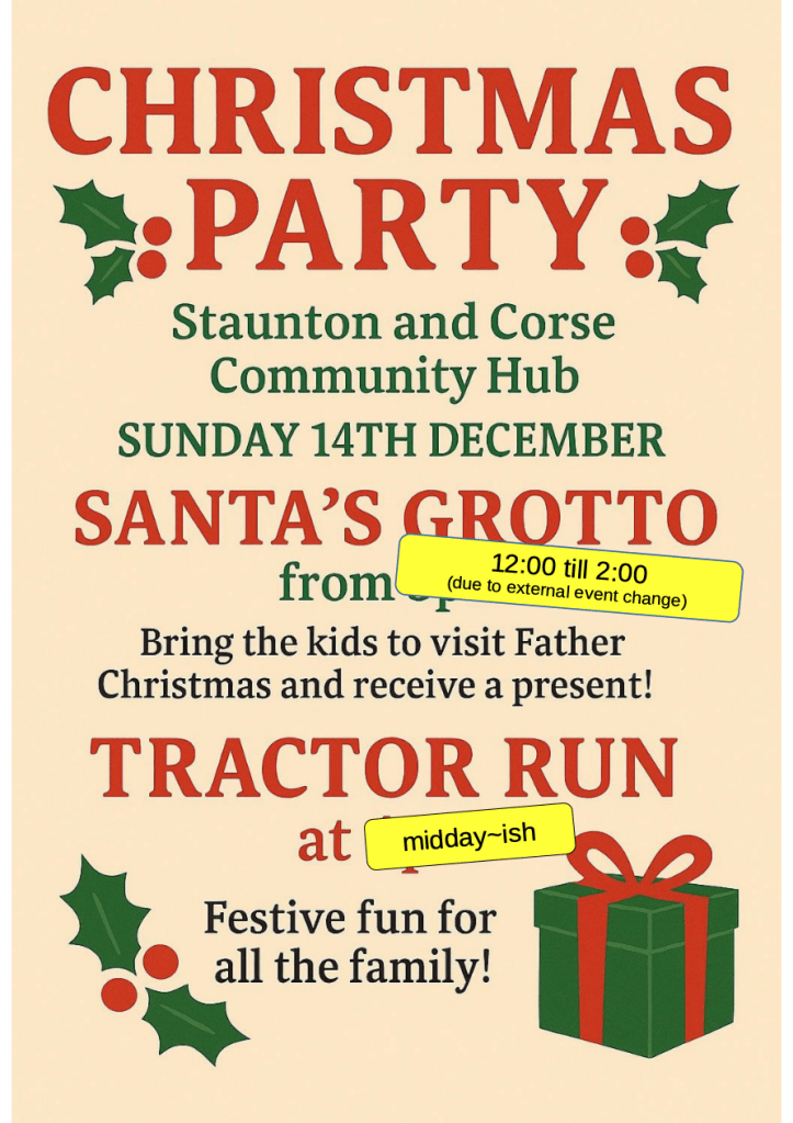 Grotto – from 12:00 – Booking essential for each child planning to visit. Santa’s elves need time to prepare gifts for every child.